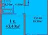 1 кімната , площа 43 / 14.5 / 18.1 , поверх 13