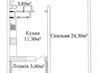 1 кімната , площа 45 / 24 / 11 , поверх 3