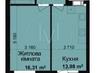 1 кімната , площа 38 / 16 / 12 , поверх 3