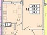 1 комната , площадь 35 / 16 / 9 , этаж 15