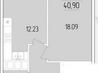1 кімната , площа 41 / 18 / 15 , поверх 20