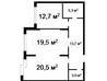 1 кімната , площа 41 / 14 / 15 , поверх 20
