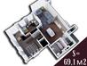 3 кімнати , площа 69.1 / 47 / 12 , поверх 14
