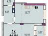 1 кімната , площа 43 / 13 , поверх 7