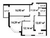 2 кімнати , площа 46 / 28 / 8 , поверх 16