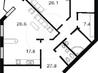 1 кімната , площа 44 / 18 / 17 , поверх 25