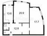 2 кімнати , площа 72 / 39 / 13 , поверх 17