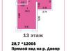 1 кімната , площа 28.7 / 15 , поверх 13