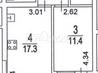 1 кімната , площа 43.7 / 11.4 / 17.3 , поверх 11