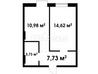 1 кімната , площа 37 / 15 / 11 , поверх 3
