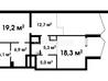 1 кімната , площа 39 / 17 / 8 , поверх 22