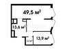 1 кімната , площа 42 / 17 / 13 , поверх 7