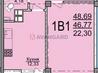 1 кімната , площа 48 / 12 , поверх 16